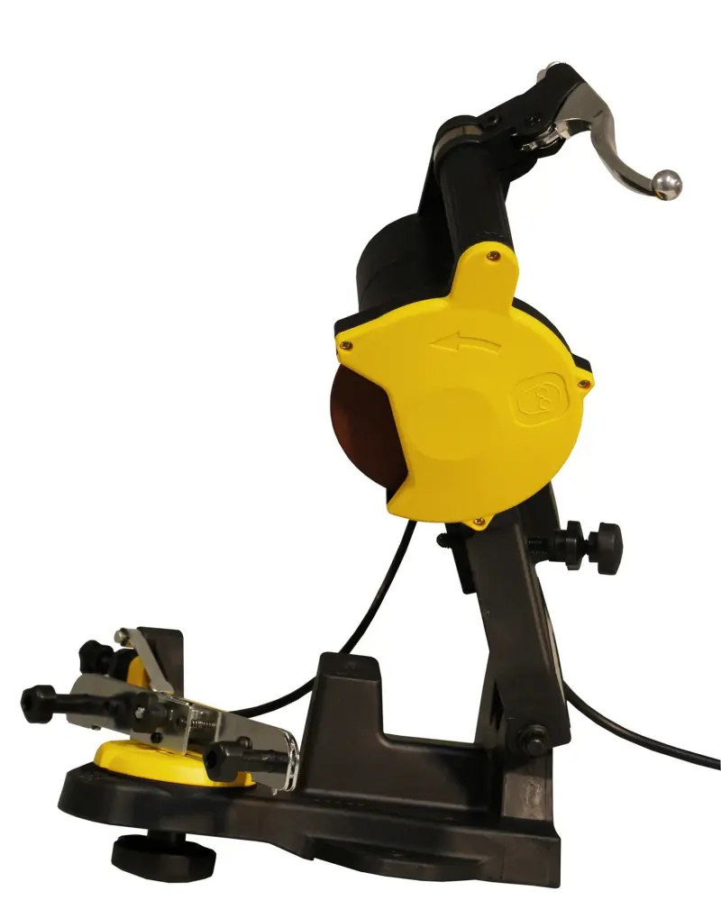 Brúska pílových reťazí 85 W Proteco je vhodná pre brúsenie alebo  ostrenie takmer všetkých pílových reťazí použitých v širokej škále moderných motorových píl. Brúska pílových reťazí umožňuje vďaka kvalitnej konštrukcii z odolného plastu, výkonnému bezúdržbovému asynchronnému motoru s výkonom 85 W, brúsnemu kotúči s priemerom 108 mm a hlavne variabilnej možnosti nastavenia uhlov brúsenia bezpečne nabrúsiť, či naostriť všetky tvary a veľkosti ľavých aj pravých zubov pílovej reťaze. Správnym brúsením reťaze možno docieliť nielen uľahčenie Vašej práce, ale aj ochranu a predĺženie životnosti Vašej motorovej píly. Samotné brúsenie, či ostrenie spočíva vo voľbe optimálneho nastavenia hĺbky, uhla ostrenia, uhla britu a prípadnej úpravy obmedzovacej pätky zuba. Všetky tieto nastavovacie procedúry sa vykonávajú  pomocou veľmi sofistikovaných a intuitívnych ovládacích prvkov. Brúska pílových reťazí 85 W disponuje možnosťou trvalého upnutia k pracovnému stolu pomocou 2 montážnych otvorov v podstavci, čo umožňuje nielen pohodlné, ale hlavne bezpečné brúsenie pomocou brúsky pílových reťazí. Brúska pílových reťazí 85 W disponuje možnosťou rýchlej a pohodlnej aretácie pomocou pákovej brzdy.
