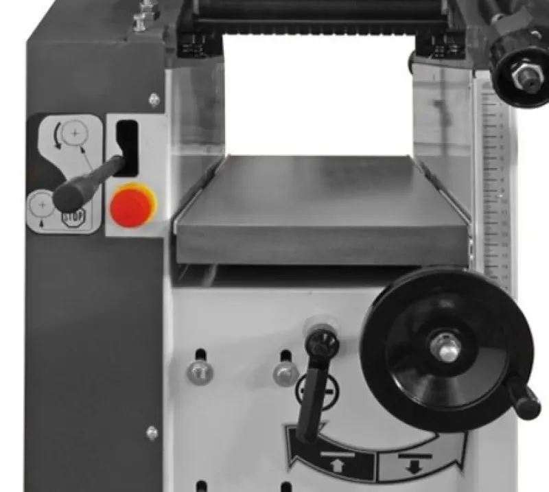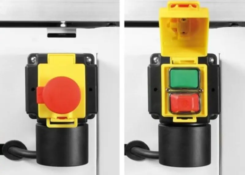 Porovnávacie a hrúbkovacie frézka je vybavená elektromagnetickým vypínačom s  protiprachovou úpravou i funkciou Stop tlačidlo a ďalšími prvkami zaisťujúce  maximálnu bezpečnosť a komfort obsluhy. Pripojenie frézky k sieti sa vykonává  pomocou 16 A 5-pólové vidlice k zásuvke umiestnené na stroji, sled fáz a tým aj  správny smer otáčania možno zmeniť jednoduchým pretočením 2 pólov v zásuvke  pomocou plochého skrutkovača.