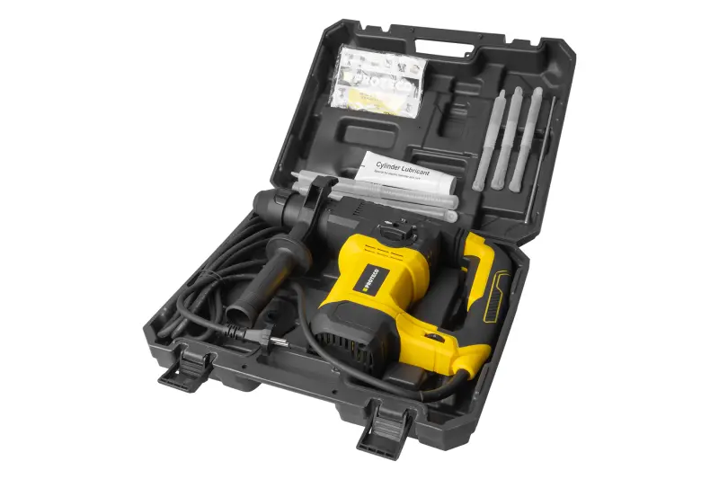 Kladivo disponuje upínacím systémem SDS Plus, kterýje navržen pro snadnou a rychlou výměnu vrtáků a sekáčů, aniž byste potřebovali klíč. Tento systém nabízí bezkonkurenční pohodlí při práci. SDS Plus umožňuje efektivní přenos síly z kladiva na nástroj, což zajišťuje vyšší výkon a rychlejší pokrok ve vrtání a sekání.