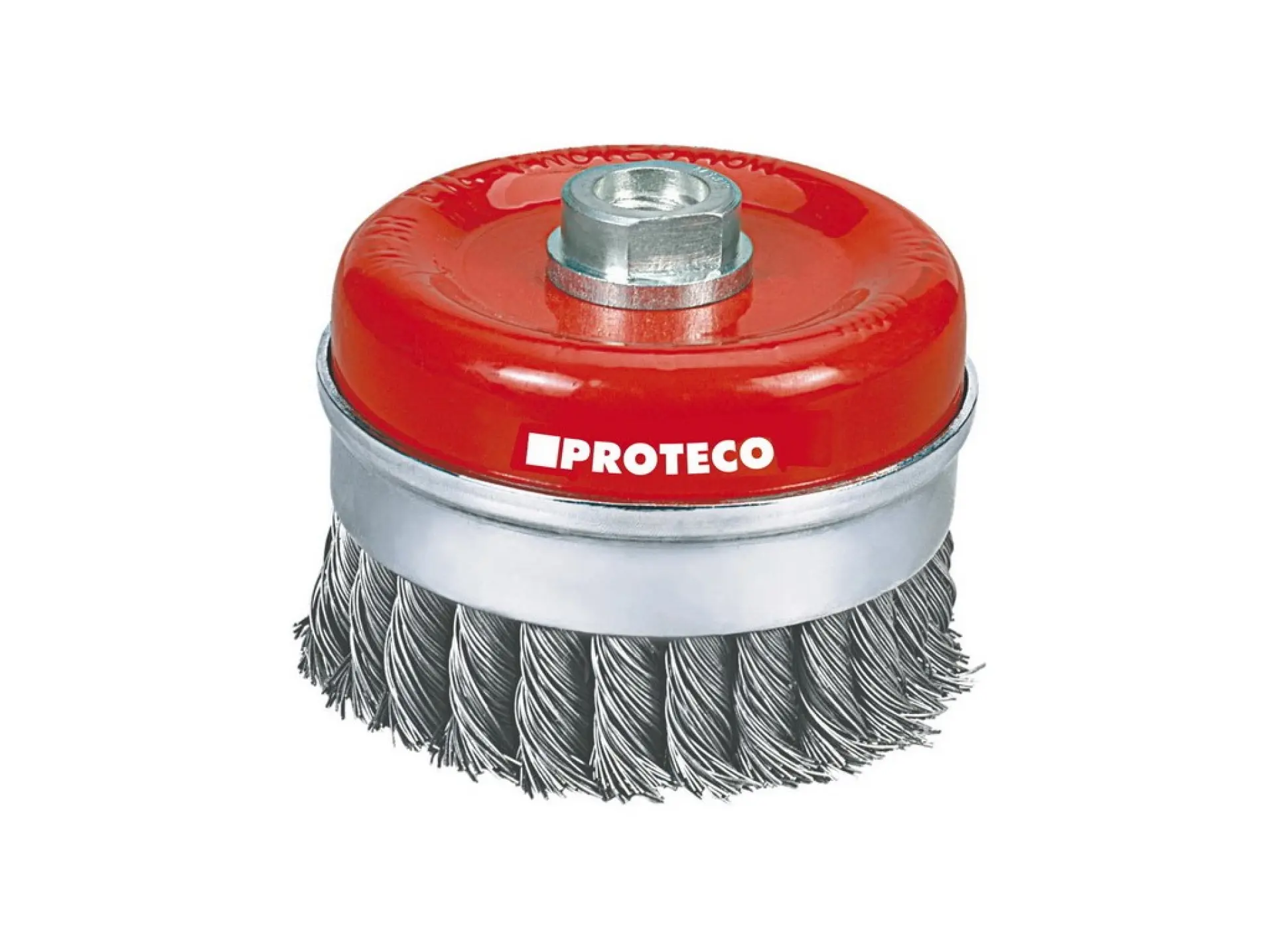 Hrnčekový copánkový kefa je nástroj pre zbavenie korózie, leštenie alebo odstraňovanie nečistôt z materiálov rôznych veľkostí aj tvarov najmä potom ocele. Hrnčekový kefa sa tak stáva vhodným pre prácu doma, v dielni aj na záhrade. Hrnčekový kefa je vyrobený z veľmi vydarené a vyváženej kombinácie chróm-vanádiovej ocele a ušľachtilej ocele, garantujúci vysokú mieru bezpečnosti, nízke hodnoty vibrácií a tým aj pokoja hrnkového kefy v behu. Hrnčekový kefa je vďaka upínaciu maticu so závitom M14 a stúpaním 2, ideálny pre prakticky všetky moderné uhlové brúsky.