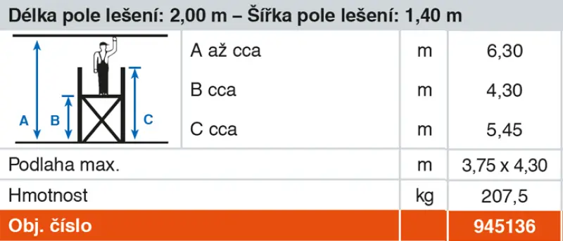 PROTEC XXL; široké provedení; výška lešení 5,45 m; pracovní výška 6,3 m; hmotnost 207,5 kg