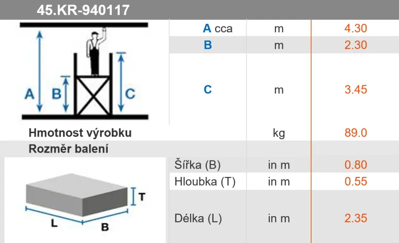 PROTEC; výška lešení 8,3 m; pracovní výška 9,3 m; 203 kg