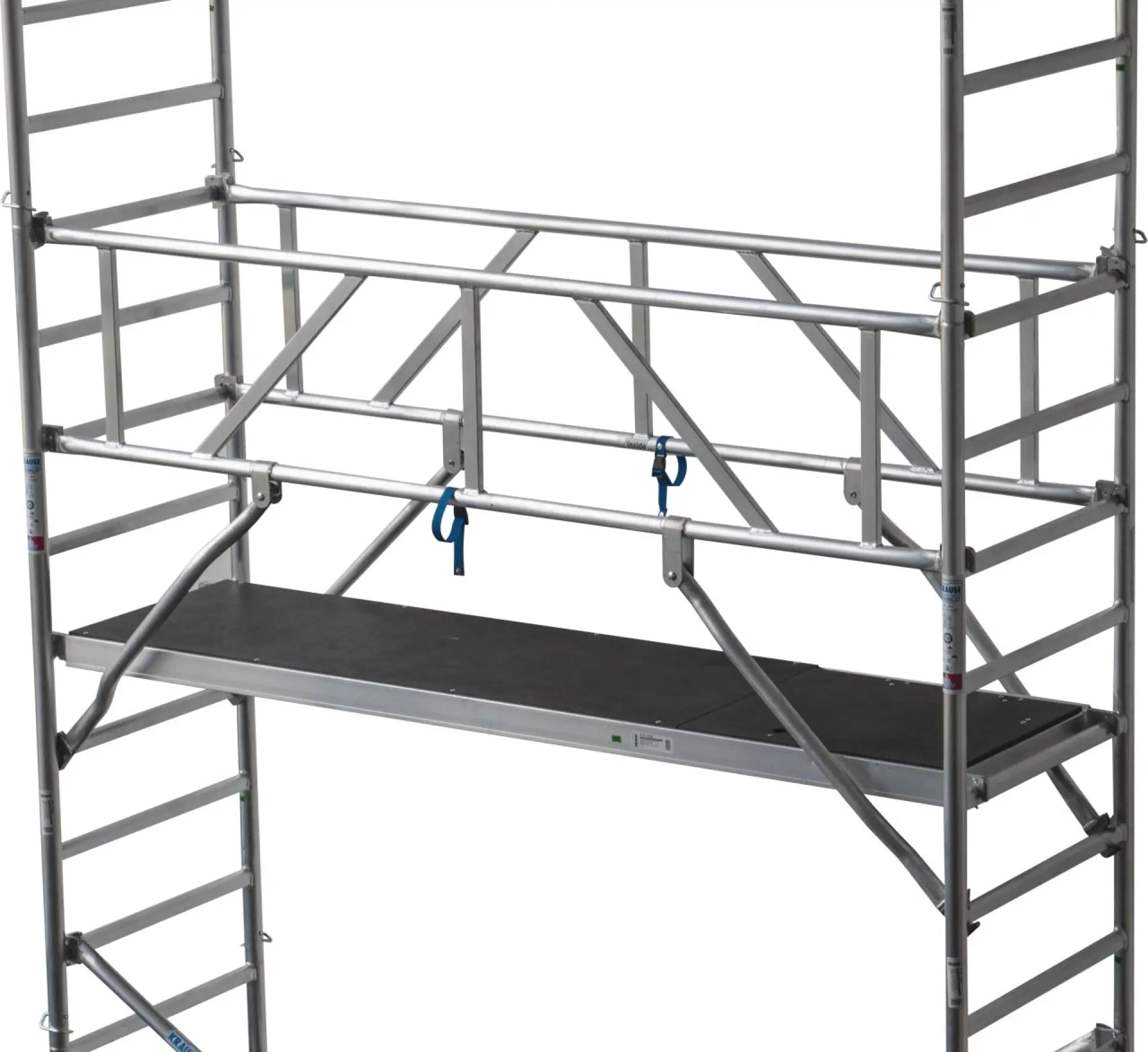 Lešenie disponuje systémom GuardMatic®, ktorý umožňuje inštaláciu zábradlia ešte pred vstupom na ďalšiu úroveň – tým sa minimalizuje riziko pádu pri stavbe. Diagonály sú pevnou súčasťou konštrukcie, čo zvyšuje stabilitu pri všetkých úrovniach zostavenia.