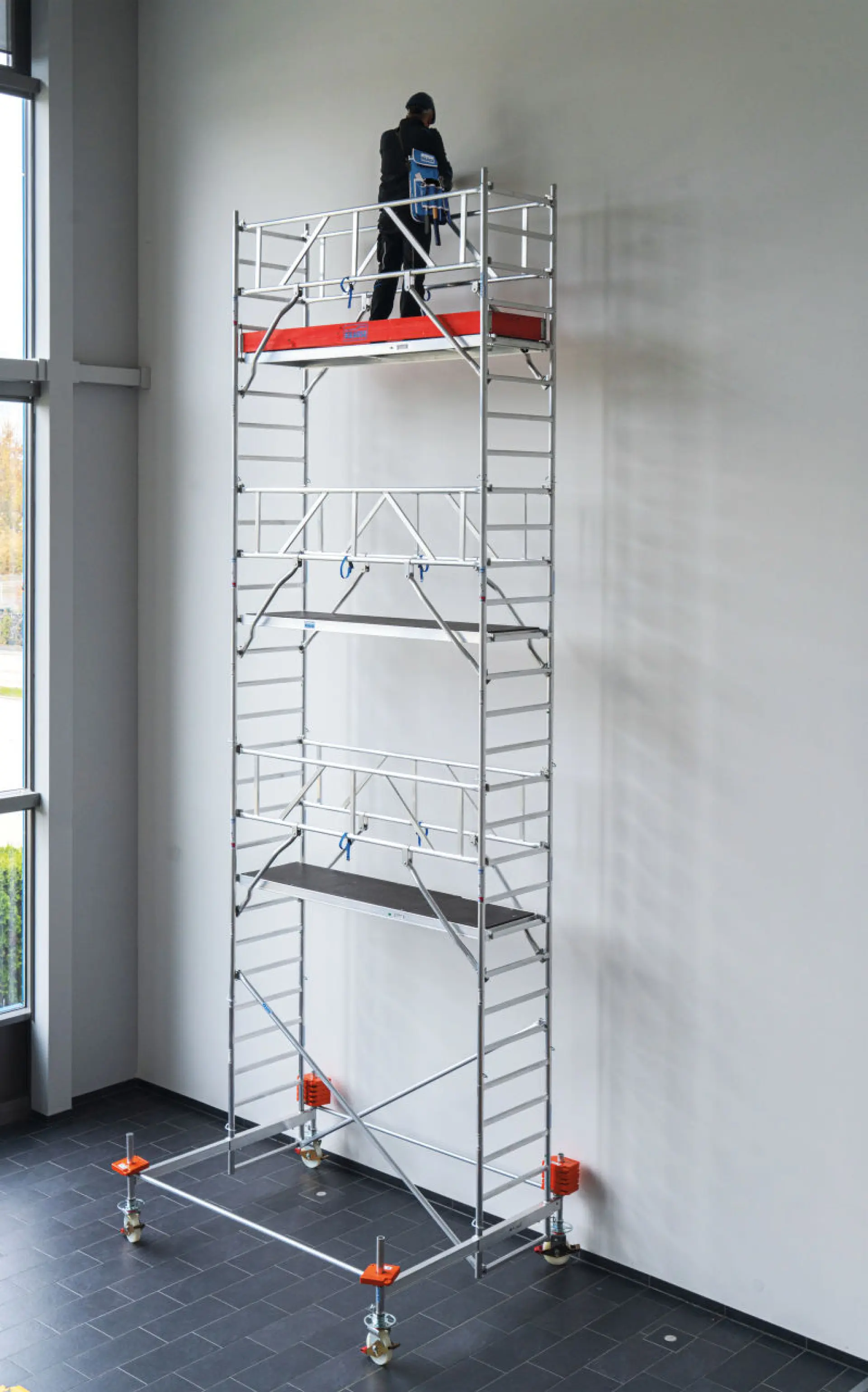 Profesionálne lešenie vhodné pre náročné práce vo výške 14,50 m, poskytuje robustnosť, flexibilitu a bezpečnosť v duchu značky KRAUSE. Vďaka modulárnej konštrukcii, jednoduchej montáži a osvedčeným bezpečnostným prvkom je ideálnou voľbou pre remeselníkov, stavby aj profesionálne servisné práce. Lešenie spĺňa normu DIN EN 1004-1, je TÜV testované a patrí do zaťažovacej skupiny 3 s nosnosťou 200 kg/m².