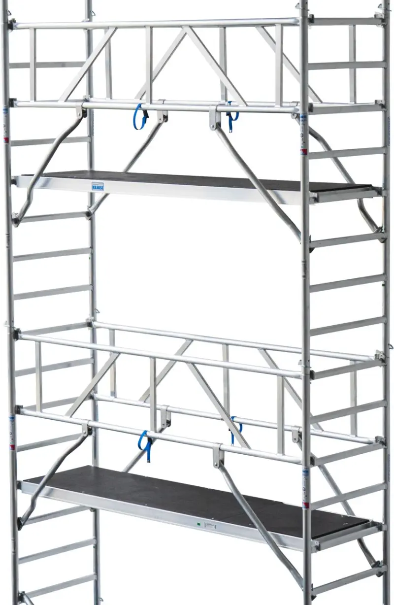 Profesionálne lešenie vhodné pre náročné práce vo výškach až 7,50 m, ktoré poskytuje robustnosť, flexibilitu a bezpečnosť v duchu značky KRAUSE. Vďaka svojej modulárnej konštrukcii, jednoduchému montáži a osvedčeným bezpečnostným prvkom je ideálnou voľbou pre remeselníkov, staveniská a profesionálne servisné práce. Lešenie spĺňa normu DIN EN 1004-1, je testované TÜV a patrí do skupiny nosnosti 3 s nosnosťou 200 kg/m².