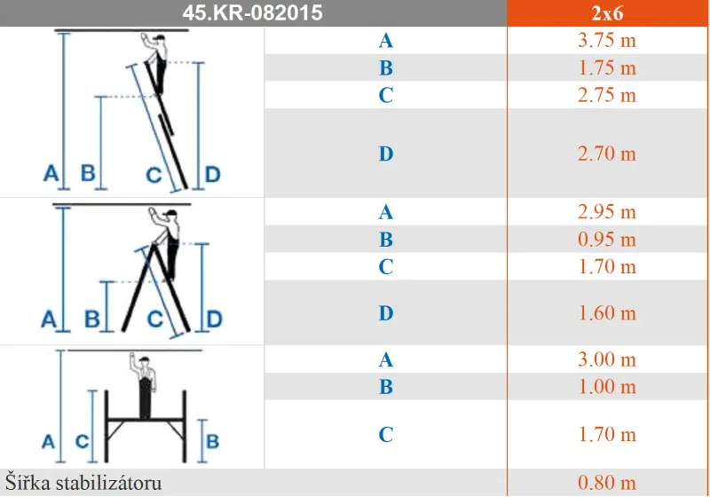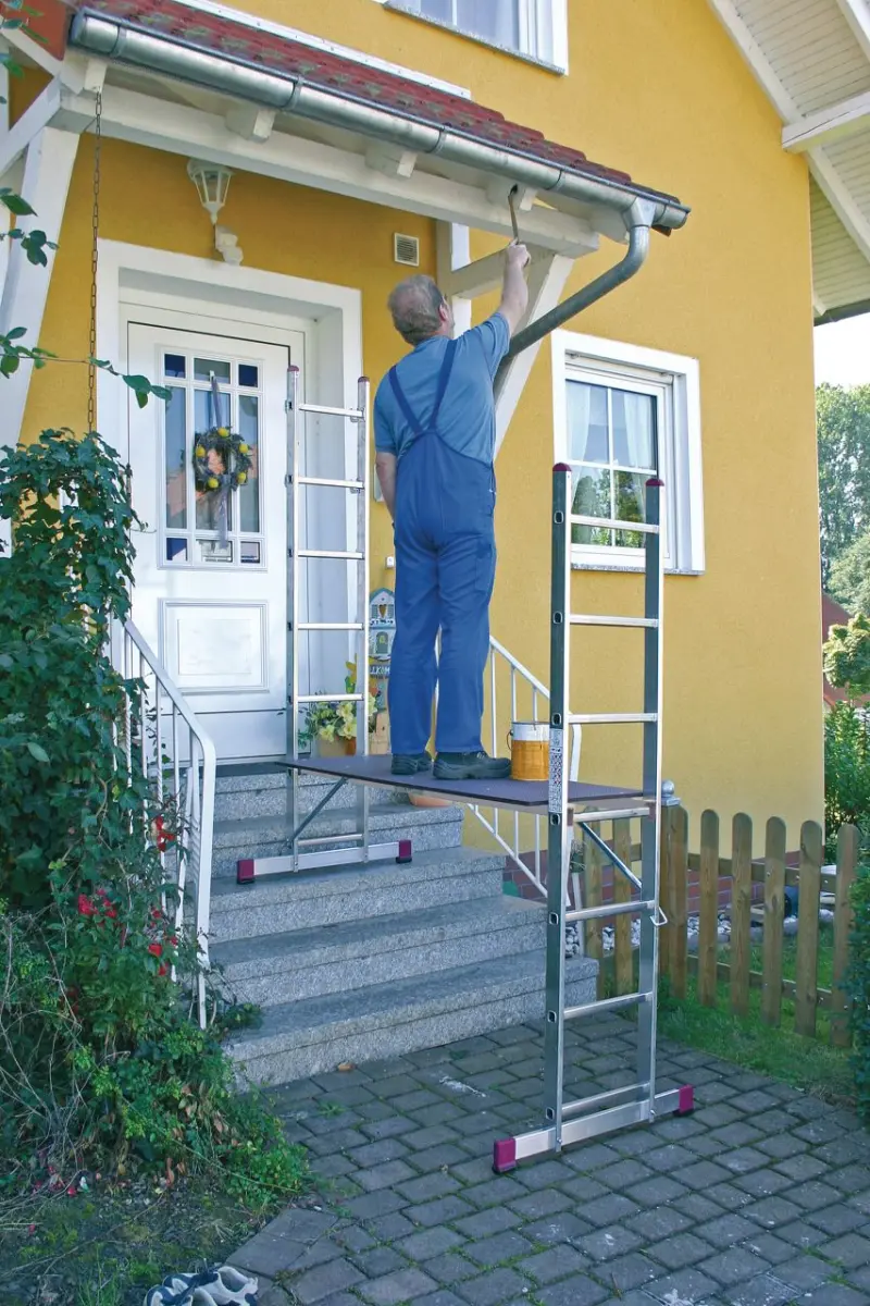 Multifunkční lešení; slouží i jako žebřík a štafle; pracovní výška 3 m (lešení); 3,75 m (žebřík)