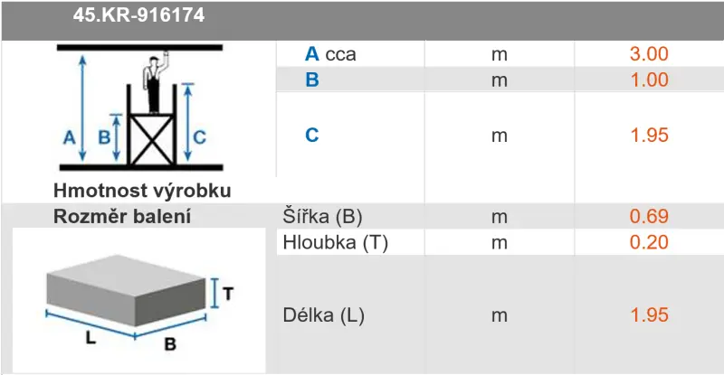 MINI; výška lešenia 1,95 m; pracovná výška 3 m; 18 kg
