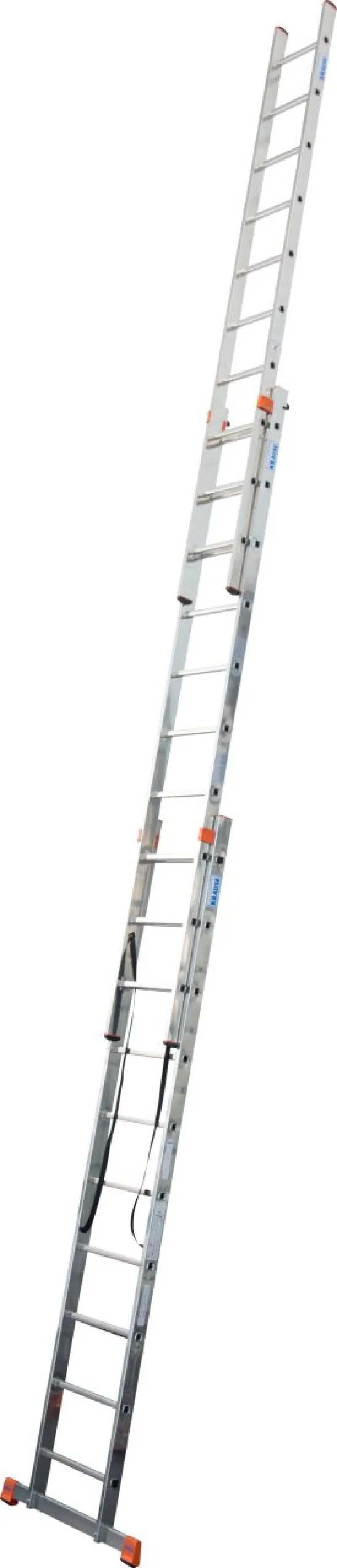 Trojitý lemovaný univerzálny hliníkový rebrík použiteľný ako jednoduchý, výsuvný a dvoják