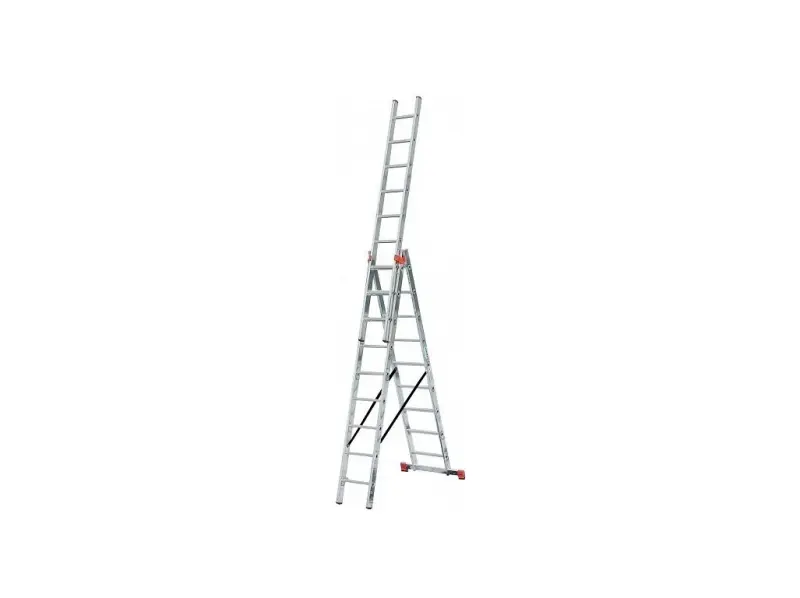 Trojitý lemovaný univerzálny hliníkový rebrík použiteľný ako jednoduchý, výsuvný a dvoják