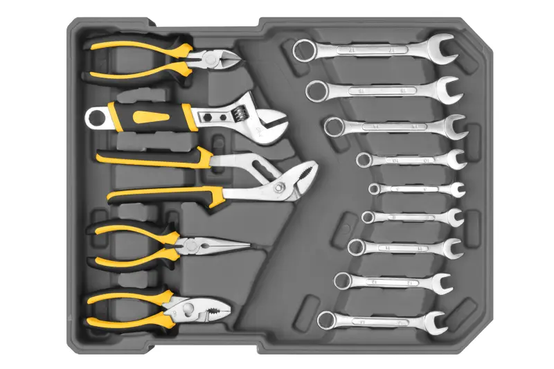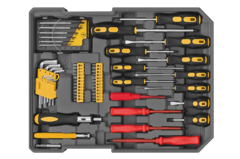 Sada náradia v kufri na kolieskach 245 dielov je pomocníkom pre bežnú údržbarsku, ale aj tvoricú prácu doma. v dielni alebo na záhrade. Ide o obsahovo veľkoryso vybavenú sadu ručného náradia z vysoko kvalitnej chróm-vanádiovej ocele. V praktickom, kompaktnom a zároveň vysoko odolnom hliníkovom kufri na kolieskach možno tak získať nepreberné množstvo hůavíc, kľučov klieští, skrutkovač a mnoho ďalšieho najpoužívanejšieho náradia, ktoré vďaka precízne tvarovaným výplniam zostane vždy na svojom mieste.