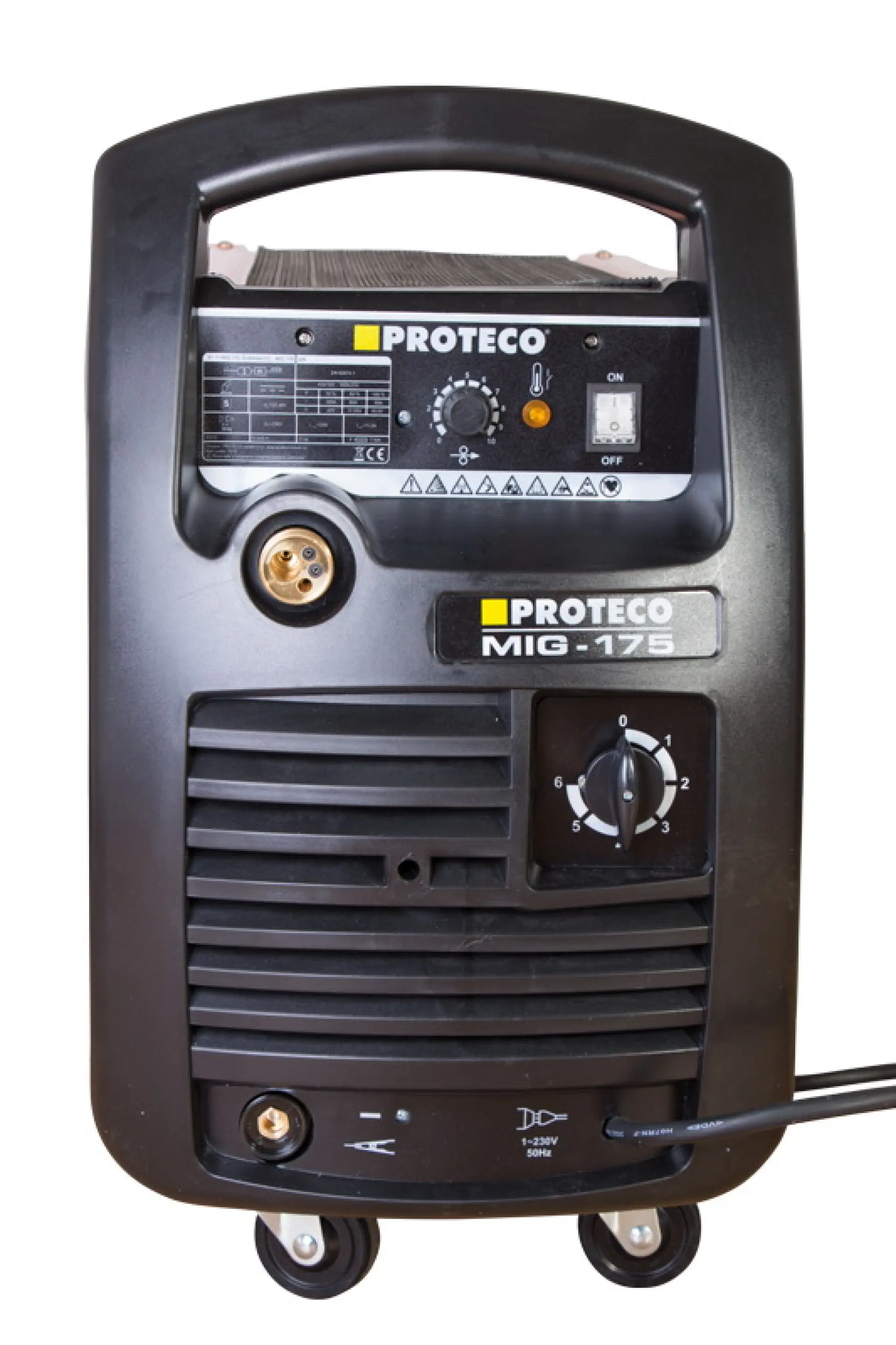 Zváračka CO2 Proteco je určená pre poloautomatické oblúkové zváranie kovov v ochrannej atmosfére aktívneho (metóta MAG), alebo inertného (metóda MIG) plynu. Elektródu tvorí kontinuálne podávaný drôt z cievky. Robustná konštrukcia, avšak nízká hmotnosť vytvárá zo zváračky skvelého pomocníka pre zváranie doma, na chate, dillne či záhrade a to aj v ťažko prístupných miestach. Súčasťou zváračky sú káble s uzemňovacími klišťami s bajonetovým uchytením a zváracou pištoľou s EURO koncovkou pre jednoduché a komfortné pripojenie.