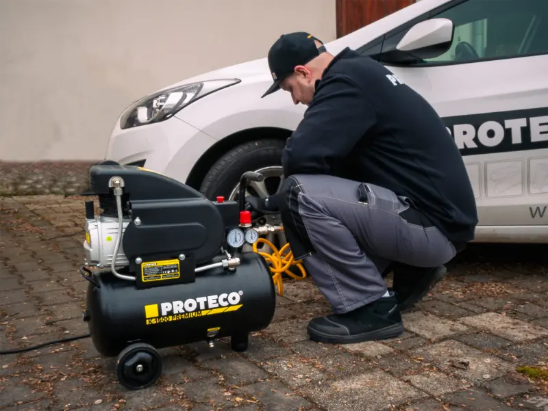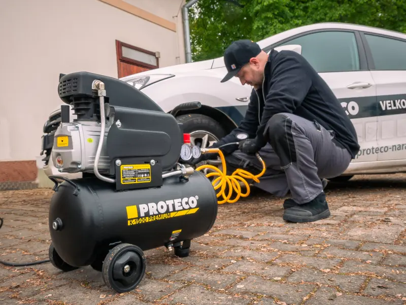 Olejový kompresor PROTECO PREMIUM 1,5 kW s objemom vzduchovej nádrže 24 l je špičkovým partnerom pre domáce a remeselné dielne, garáže a iné náročné aplikácie. Jednovalcový motor slúži na výrobu stlačeného vzduchu a následný pohon pneumatického náradia a nástrojov alebo na hustenie pneumatík, lôpt, bazénov a podobne. Kompresor má dostatočný výkon 1,5 kW (v starých časoch 2 konské sily) na pohon bežných dielenských pneumatických nástrojov.