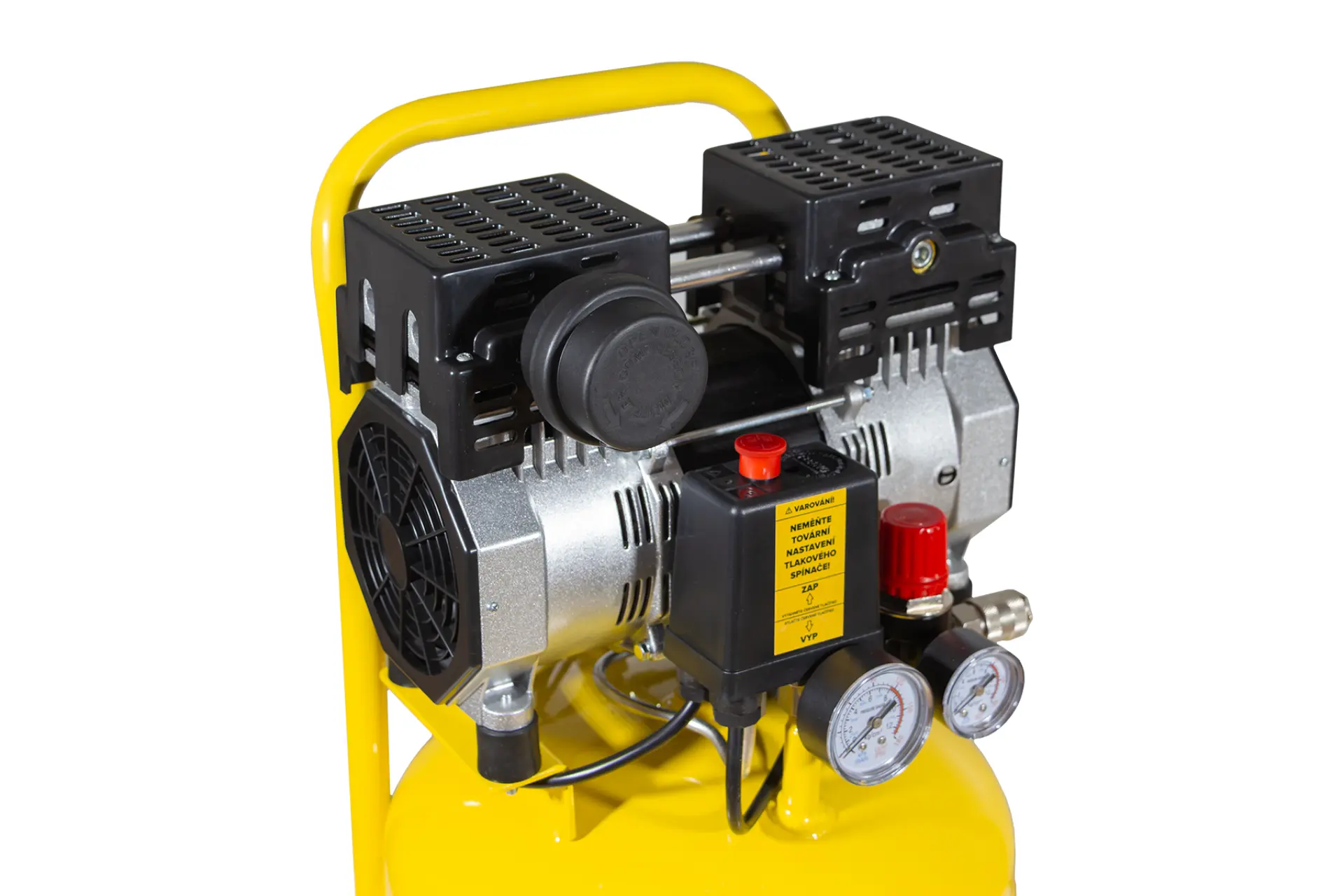Tichá prevádzka – dvojvalcový motor s nízkou rýchlosťou zaisťuje veľmi tichú a plynulú prevádzku. Kompresor je vhodný aj do uzavretých priestorov, kde by bol bežný model príliš hlučný.