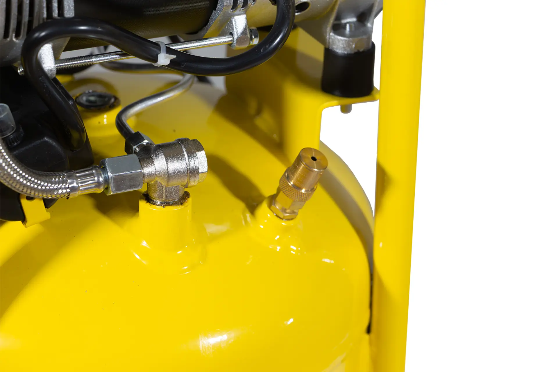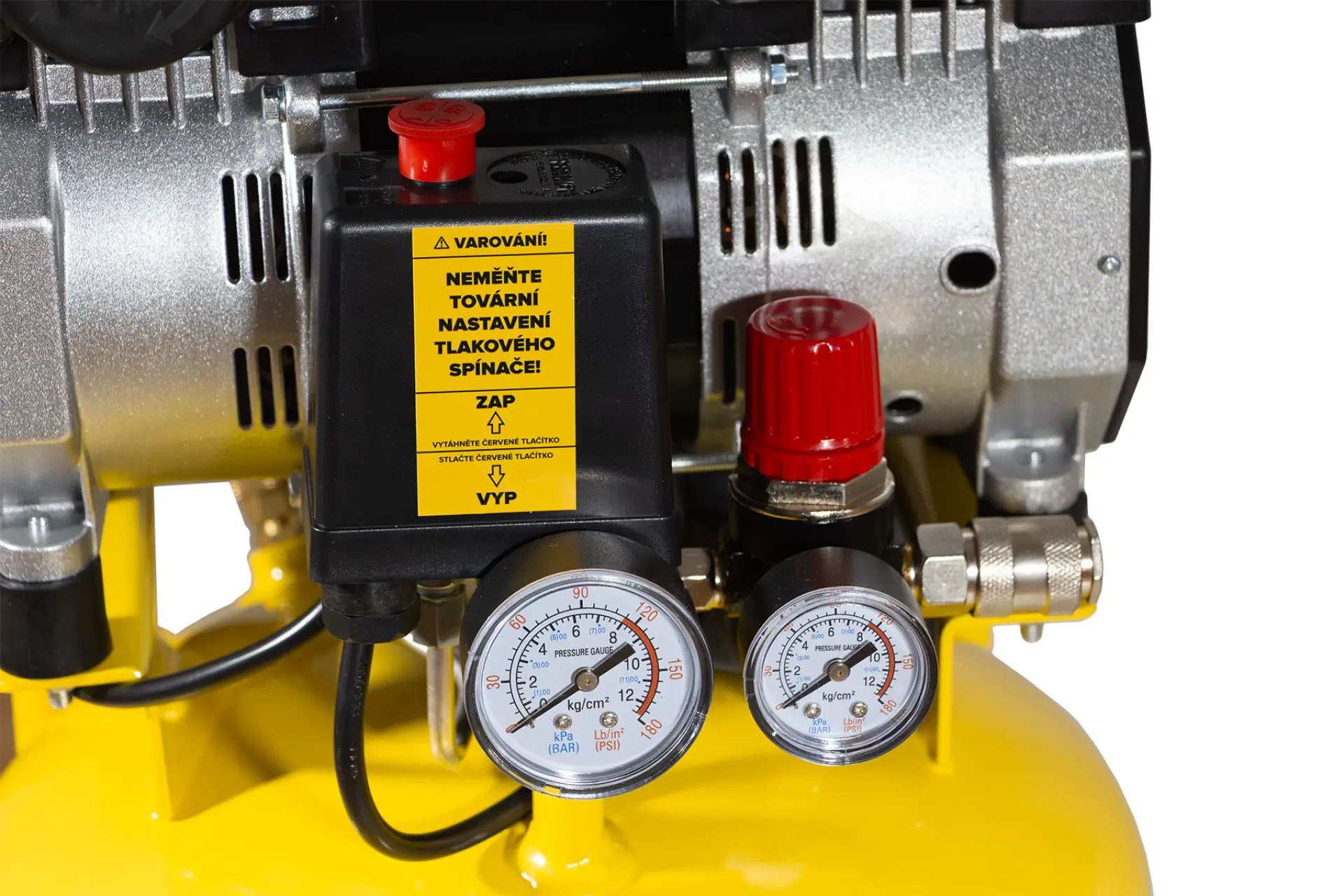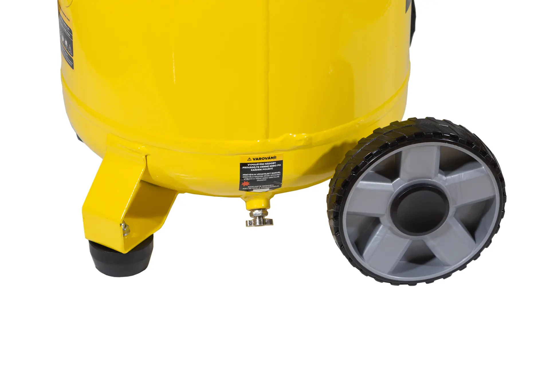Tlaková nádrž s objemom 24 litrov poskytuje dostatočný prívod vzduchu pre plynulú prevádzku aj pri dlhodobom používaní. Vďaka robustnej rukoväti, transportným kolieskam a kompaktným rozmerom je kompresor ľahko prenosný a nezaberá zbytočný priestor. Odolná nádrž je chránená práškovým náterom, ktorý zaručuje dlhú životnosť. Súčasťou vybavenia je regulátor výstupného tlaku s manometrom, ktorý umožňuje presné nastavenie požadovaného tlaku podľa konkrétneho náradia alebo použitia. To vám poskytuje plnú kontrolu nad stlačeným vzduchom – napr. nižší tlak pre airbrushing alebo vyšší tlak pre pneumatické náradie a hustenie pneumatík. Prehľadné tlakomery zobrazujú tlak v nádrži aj výstupný tlak, takže máte všetko pod kontrolou.