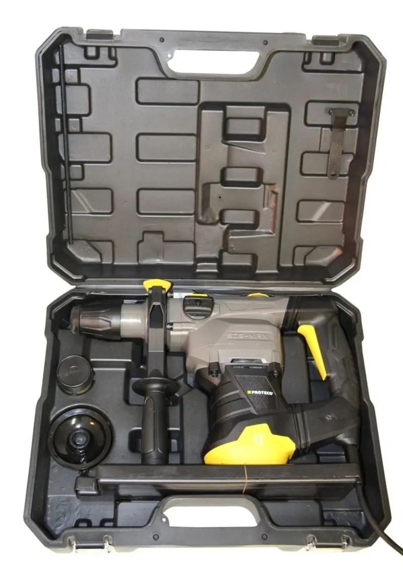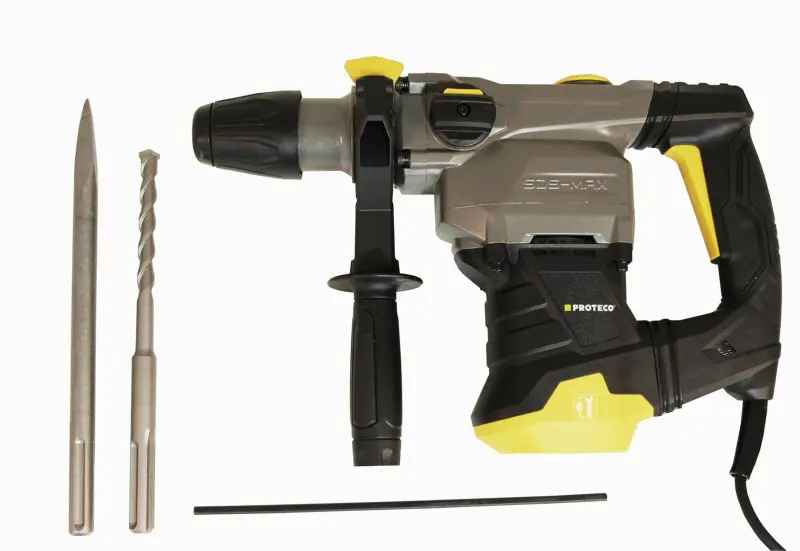 Vŕtacie kladivo Proteco je výborný pomocník, ak často pracujete so stavebnými materiálmi, ako sú tehly a beton. Vŕtačka s príklepom disponuje príkon 1 500 W motorom, ktorý dokáže vyvinúť až 850 otáčok a 4300 úderov za minútu, čo predstavuje 9 J nárazovej energie. Pre ľahké a rýchle upnutie vrtákov a sekáčov slúži systém upínania SDS MAX.