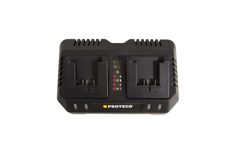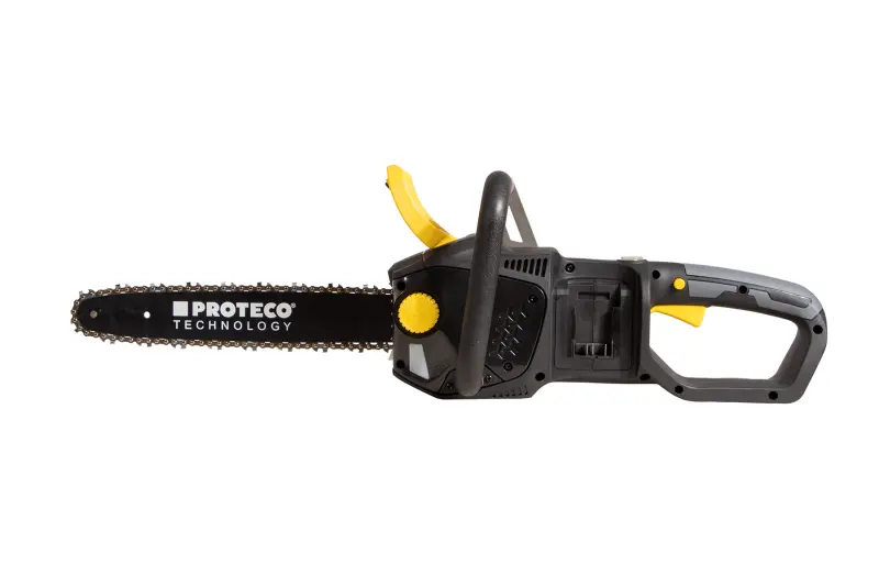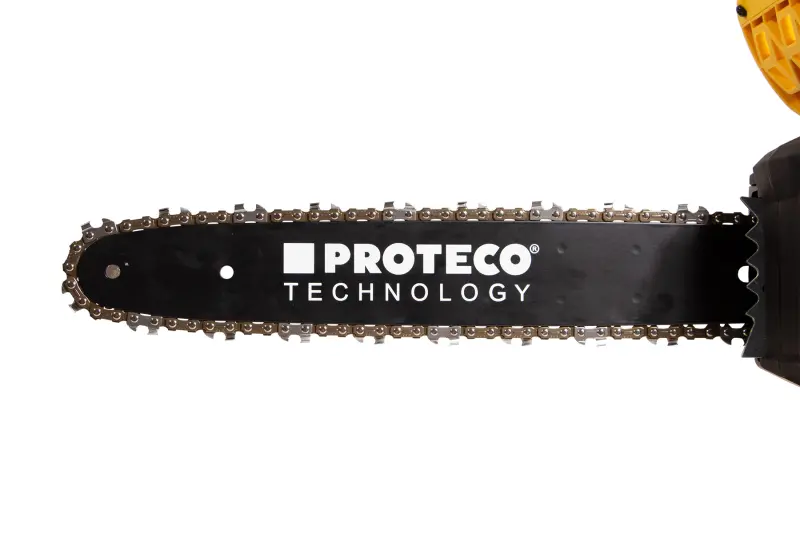 Zvýhodnená ponuka na akumulátorovú reťazovú pílu s 2 akumulátormi 6000 mAh a duálnou nabíjačkou. Akumulátorová reťazová píla PROTECO s dĺžkou lišty 36 cm je vynikajúcim nástrojom na prerezávanie stromov, rezanie kmeňov a polien, ako aj na výrobu výrobkov z dreva. Bezuhlíkový motor napájaný dvoma 20 V akumulátormi poskytuje maximálny krútiaci moment a účinnosť na ľahké rezanie, ako aj tichú prevádzku a nie je obmedzovaný prívodnými káblami. 36 cm lišta technológie PROTECO je vhodná aj na rezanie väčších kmeňov. Rýchly mechanický a elektronický brzdový systém reťaze zaručuje vysokú bezpečnosť. Mazanie sa vykonáva automaticky. Napínanie reťaze sa vykonáva pomocou otočného prvku na kryte reťaze - nie je potrebné žiadne náradie.