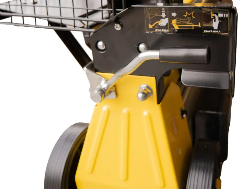 Bezpečnosť na prvom mieste: štiepačka spĺňa najnovšie európske bezpečnostné normy. Dvojpákové ovládanie piestu zabraňuje zraneniam, ktoré by mohli vzniknúť pri ovládaní jednou rukou. Okrem toho je vybavený ochrannou klietkou, ktorá zabraňuje poraneniam spojeným s vysunutím štiepaného polena.