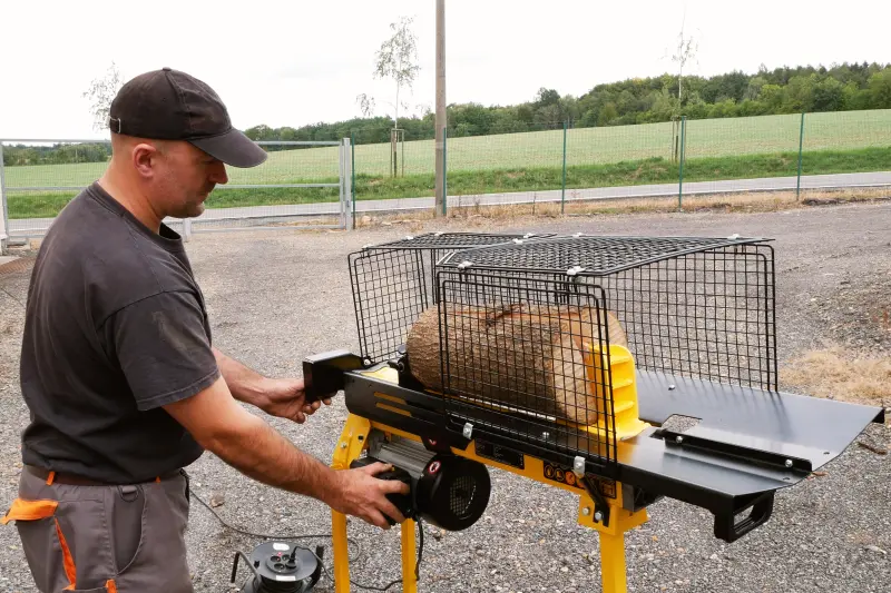 Bezpečnosť na prvom mieste: štiepačka spĺňa najnovšie európske bezpečnostné normy. Dvojpákové ovládanie piestu zabraňuje zraneniam, ktoré by mohli vzniknúť pri ovládaní jednou rukou. Okrem toho je vybavený ochrannou klietkou, ktorá zabraňuje poraneniam spojeným s vysunutím štiepaného polena.