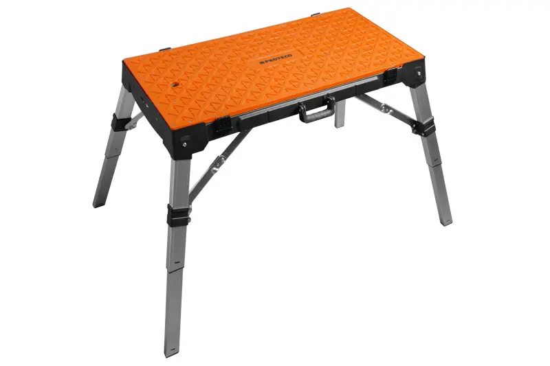 Multifunkčný pracovný stôl PROTECO 4v1 je multifunkčný nástroj pre všetkých, ktorí hľadajú flexibilný pracovný a praktický nábytok do svojej dielne. Tento inovatívny stôl ponúka štyri rôzne funkcie (skladací pracovný stôl, výsuvná plošina, pracovné lôžko, prepravný vozík), ktoré vám uľahčia prácu. Stôl je ideálny na montáž, renováciu, údržbu a opravy v stavebníctve alebo iných odvetviach.