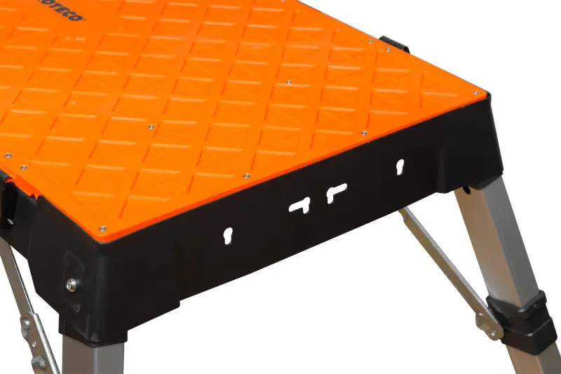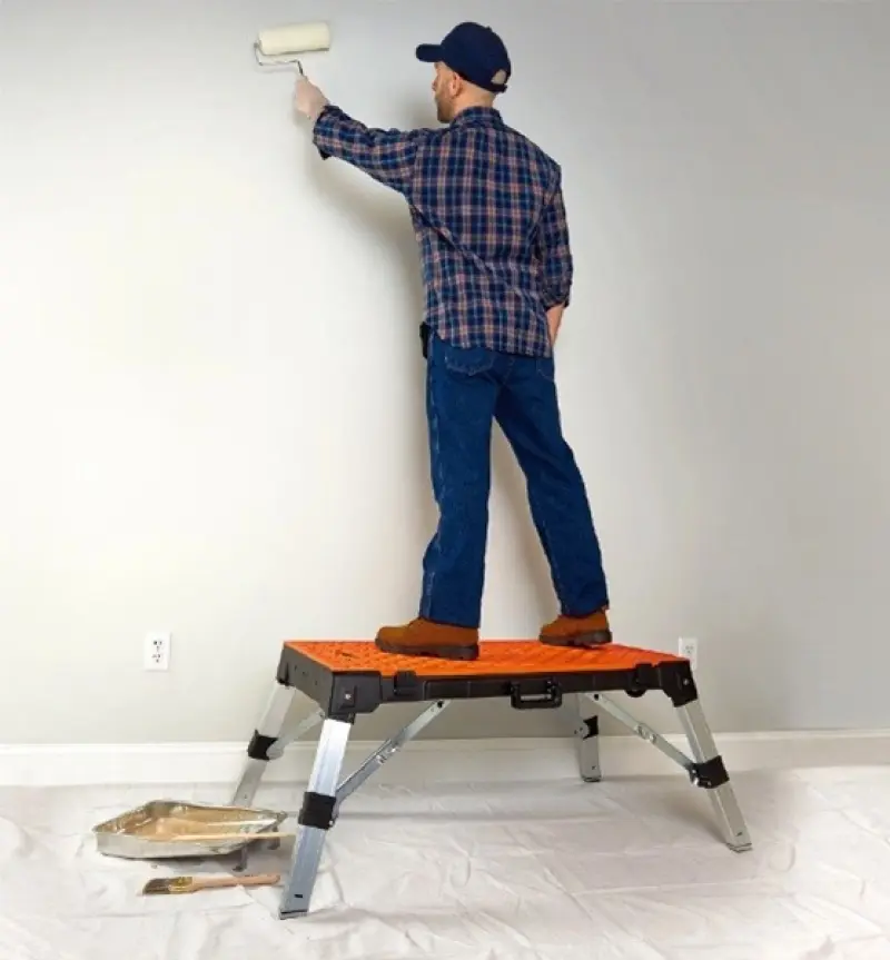 Vďaka výsuvnému mechanizmu nôh možno pracovný stôl ľahko premeniť na vyvýšenú plošinu na bezpečnú prácu vo výškach nad bežným dosahom. To uľahčuje dosiahnutie oblastí, ktoré by si inak vyžadovali nižšie lešenie alebo rebríky. Ľahko sa dajú opravovať alebo maľovať steny, dosiahnuť elektrické rozvody, potrubia a iné inštalácie. Plošina umožňuje bezpečný, pohodlný a stabilný prístup do týchto oblastí.