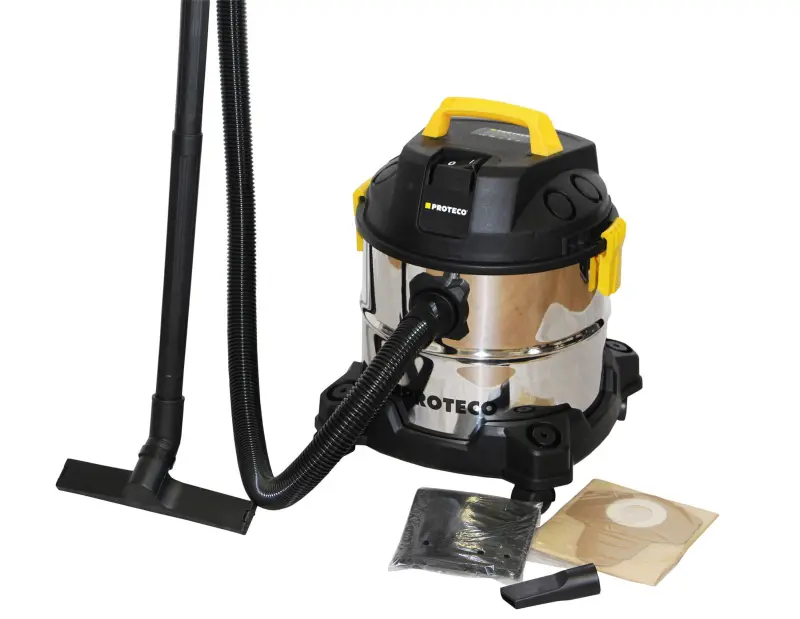 Priemyselný vysávač 1200 W Proteco vďaka výkonu zaisťuje dokonalé čistenie suchých a mokrých čistí vrátane rozliatych kvapalín. Je asistentom pri upratovaní v dome, v dielni alebo dokonca v aute. Nádoba z nehrdzavejúcej ocele obsahuje až 20 l nečistôt.  Skladacia trubica uľahčuje ukladanie vysávača. Otočné kolesá s rukoväťou zaisťujú skvelú manipuláciu s vysávačom.