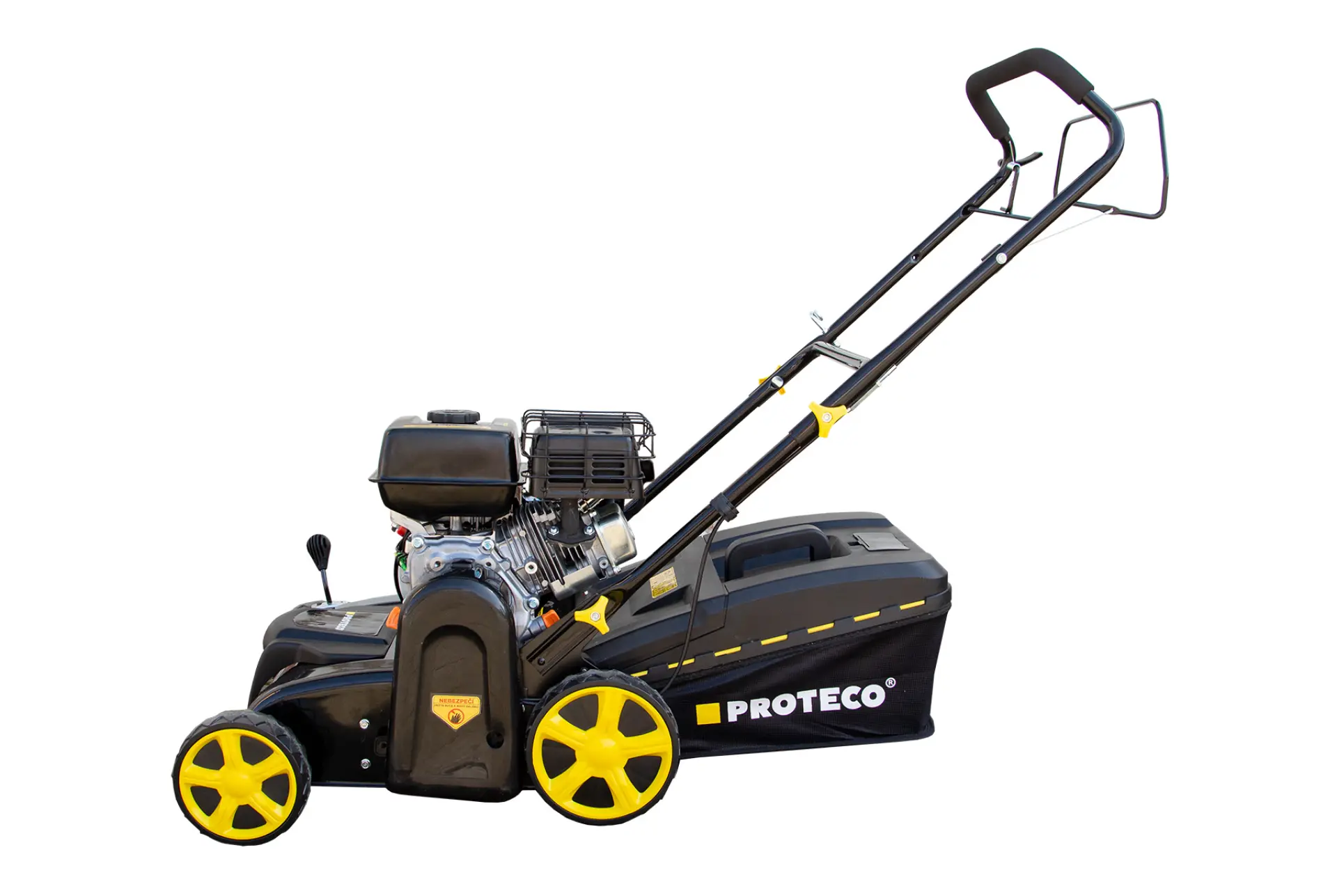 Špičkový benzínový vertikutátor PROTECO na vertikutáciu a prevzdušňovanie veľkých a členitých plôch. Je poháňaný výkonným štvortaktným motorom s výkonom 4,3 kW, čo ho samo o sebe radí na absolútnu špičku na trhu medzi benzínovými vertikutátormi. Má záber 38 cm a zberný kôš s objemom 40 litrov. Stroj obsahuje dva vymeniteľné valce na dokonalé vertikutovanie: valec s 18 nožmi na kosenie trávnika a prevzdušňovanie trávnika a valec s 24 pružinami na následné vyčesávanie machu a iných nečistôt.