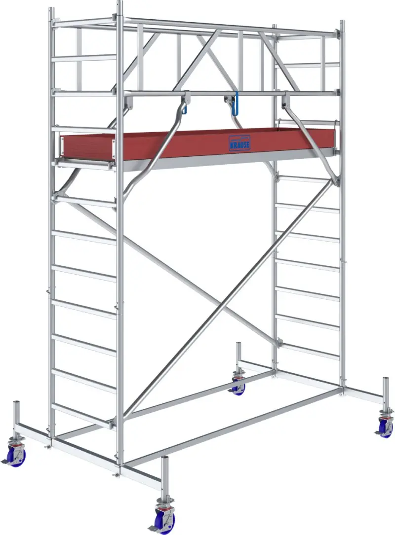 Profesionálne pojazdné lešenie STABILO radu 50 je ideálnou voľbou pre bezpečnú a efektívnu prácu vo výškach. Ponúka maximálnu pracovnú výšku až 4,40 m, vysokú stabilitu a jednoduchú montáž bez náradia. Je certifikované TÜV a zodpovedá triede lešenia 3 podľa DIN EN 1004-1, s nosnosťou 200 kg/m².