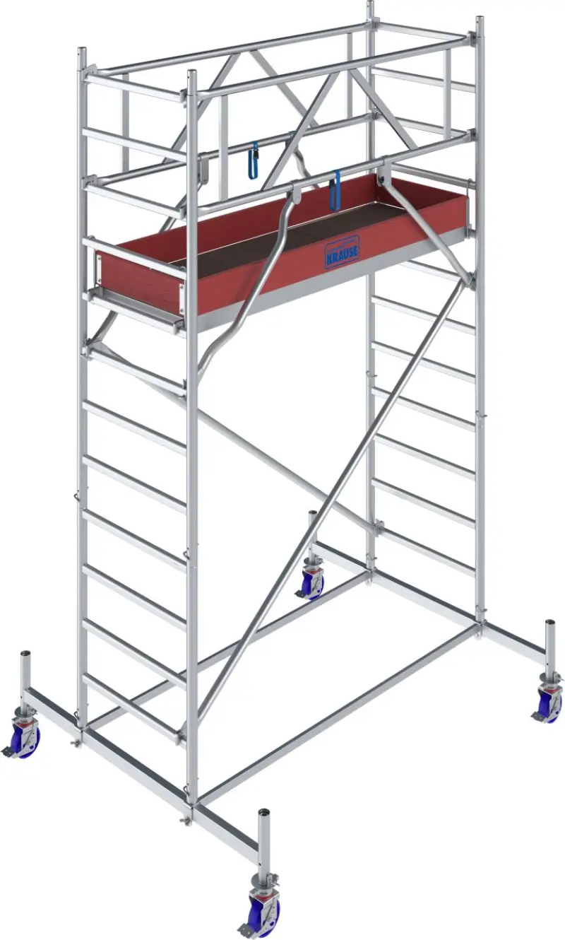 Profesionálne pojazdné lešenie STABILO radu 50 je ideálnou voľbou pre bezpečnú a efektívnu prácu vo výškach. Ponúka maximálnu pracovnú výšku až 4,40 m, vysokú stabilitu a jednoduchú montáž bez náradia. Je certifikované TÜV a zodpovedá triede lešenia 3 podľa DIN EN 1004-1, s nosnosťou 200 kg/m².