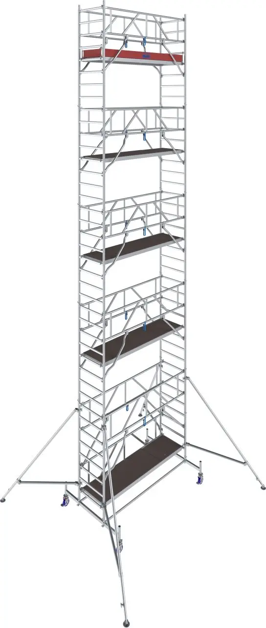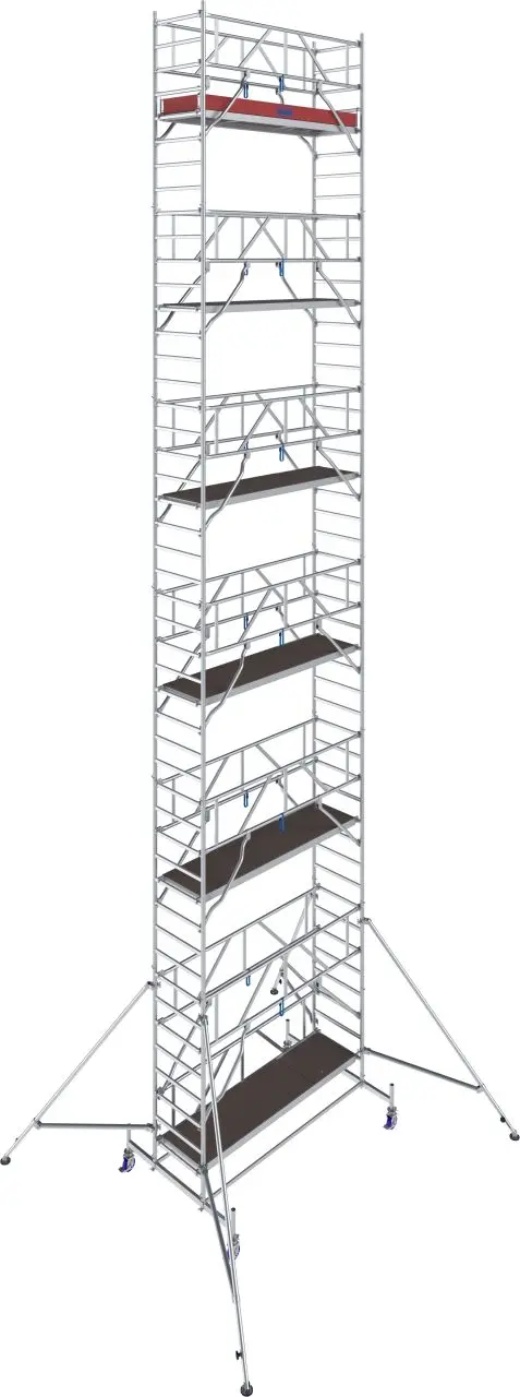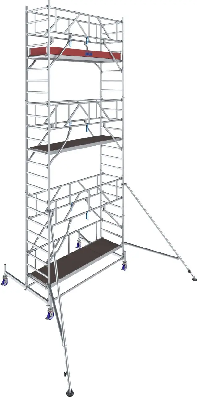 Od výšky 4,40 m sú súčasťou oceľové stabilizátory, od 7,40 m potom aj teleskopické výložníky s nastaviteľnými pätkami pre vyššiu stabilitu. Kolieska s nastaviteľnou výškou (Ø 150 mm) uľahčujú presun aj prácu na nerovnom teréne.