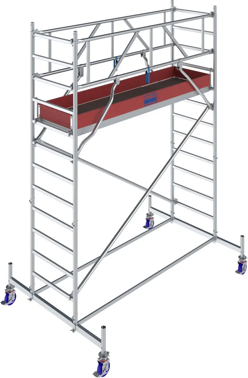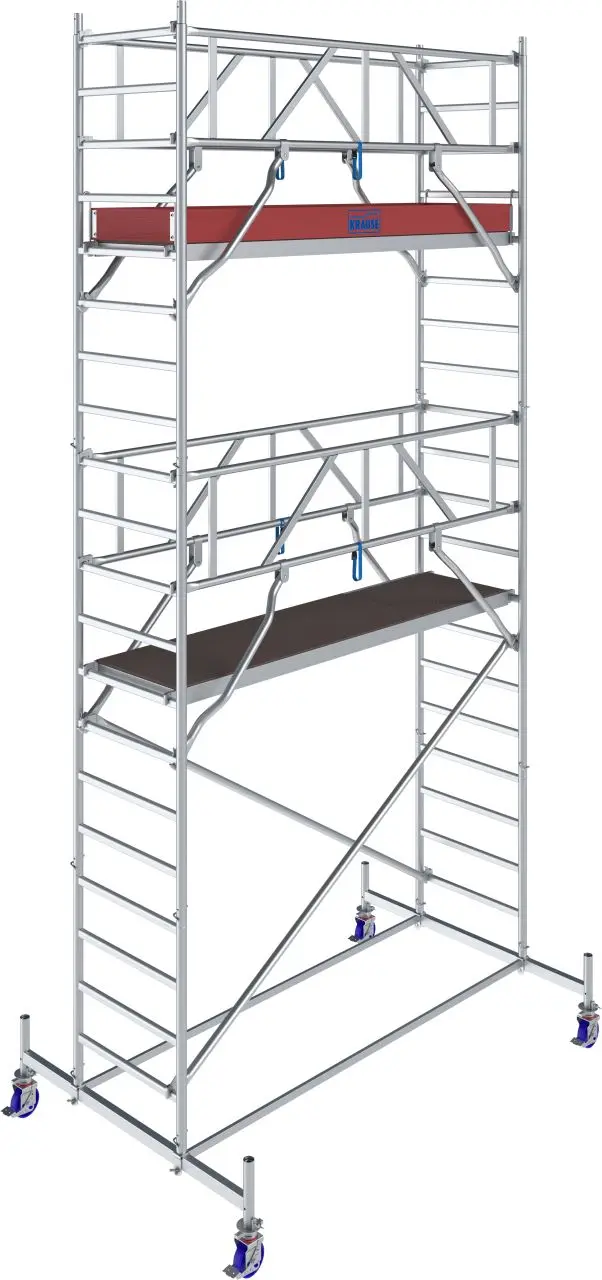 Kľúčovým prvkom je GuardMatic-System, ktorý umožňuje bezpečné upevnenie zábradlia pred montážou ďalšej plošiny – používateľ tak má kompletnú ochranu proti pádu už pri výstupe. Integrované diagonálne výstuhy zabezpečujú stabilitu a rýchlu montáž. Lešenie je vybavené samosvorným spojovacím systémom KRAUSE, ktorý urýchľuje výstavbu a demontáž bez použitia náradia.