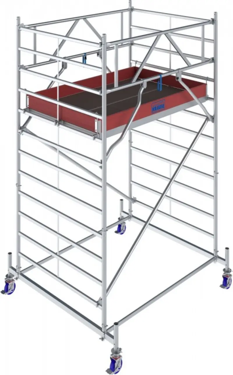 Od výšky 4,40 m sú súčasťou oceľové stabilizátory, od 6,40 m potom aj teleskopické výložníky s nastaviteľnými pätkami pre vyššiu stabilitu. Kolieska s nastaviteľnou výškou (Ø 150 mm) uľahčujú presun aj prácu na nerovnom teréne.