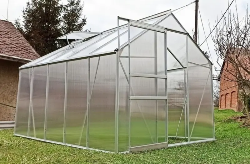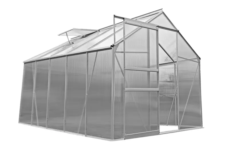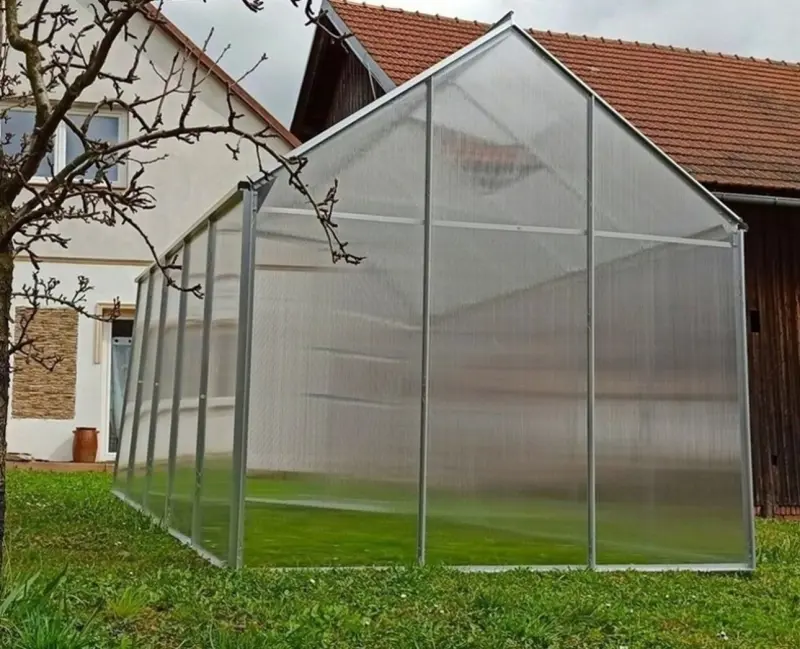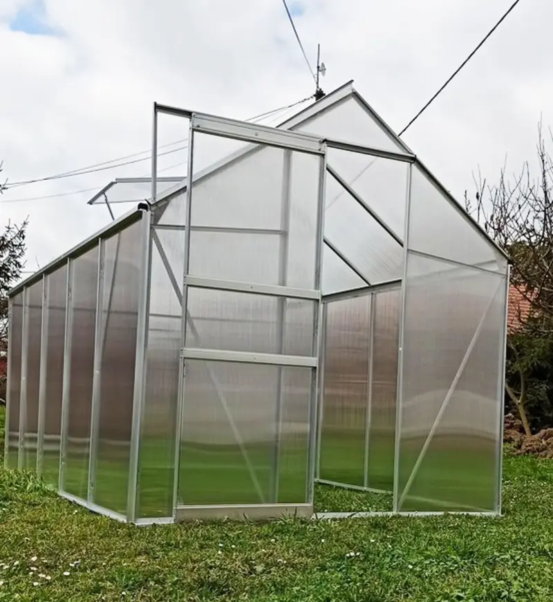 rozmery 440 x 250 cm; výška 205 cm; posuvné dvere; strešné okno; hliníková konštrukcia; polykarbonát 4 mm
