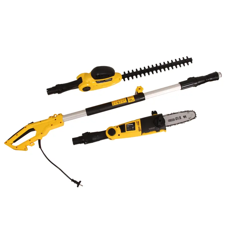 Súprava na úpravu kríkov a stromov PROTECO zahrňuje tyčový plotostrih a tyčovou prerezávací pílu. Prerezávacia píla ponúka motor s výkonom 450 W. Plotostrih s motoro o výkone 710 W a čepolou s dĺžkou 45 cm.