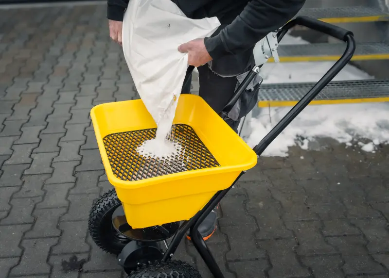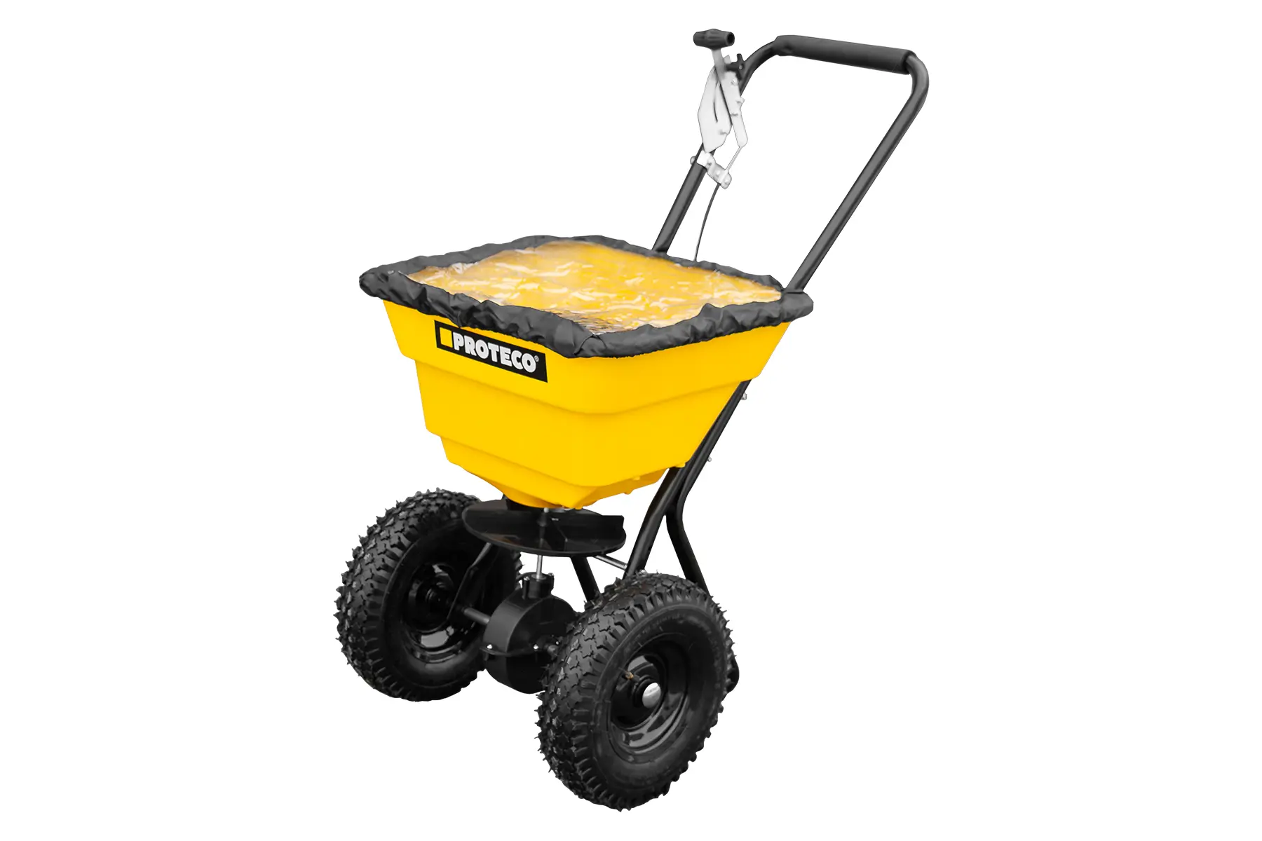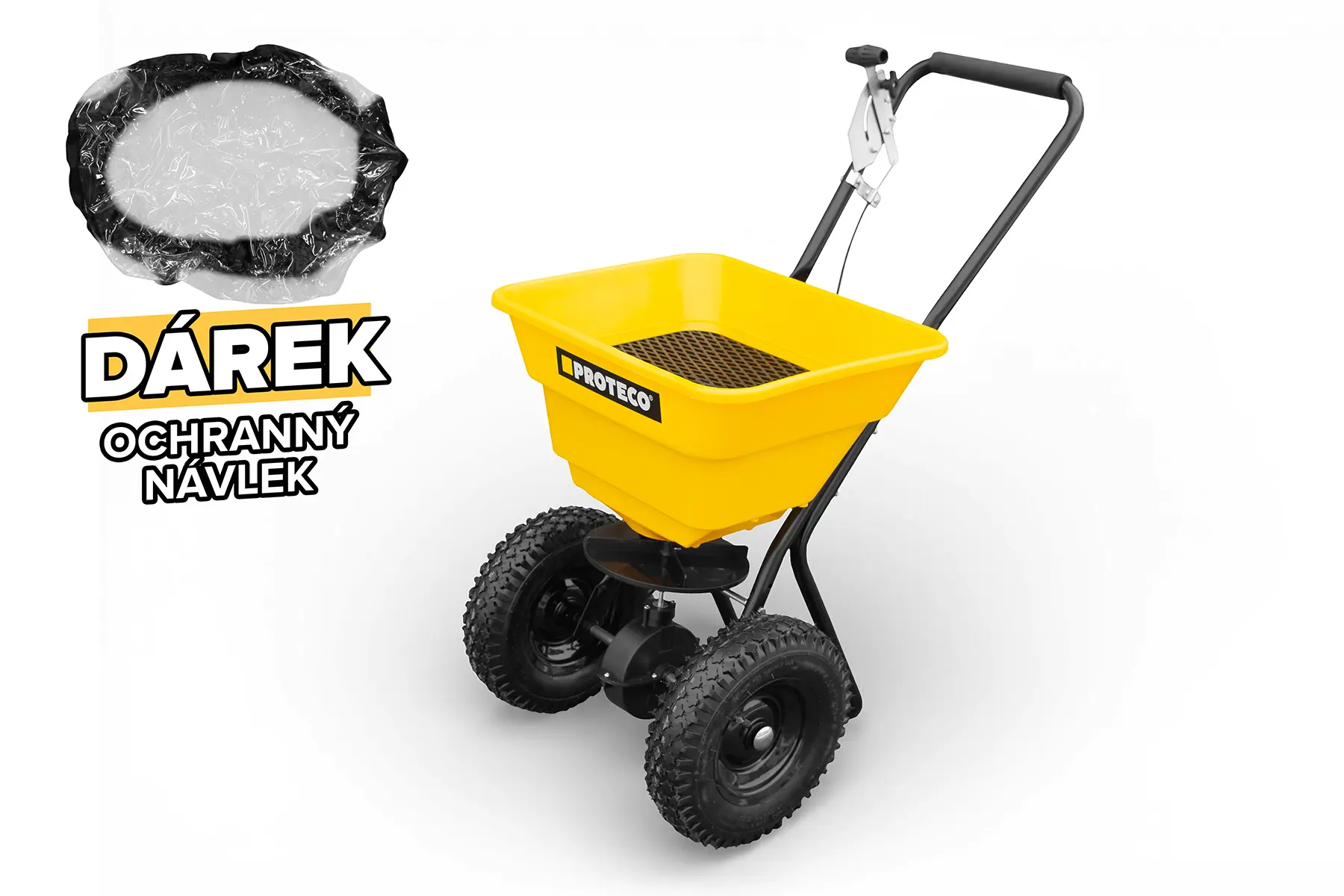 Praktickým bonusom v balení je ochranný kryt násypky, ktorý slúži na ochranu posypového materiálu pri nepriaznivom počasí. Vďaka zakrytiu zostáva materiál suchý, nezvlhne a nezačne sa lepiť, čo zabezpečuje plynulý posyp aj počas dažďa alebo sneženia.