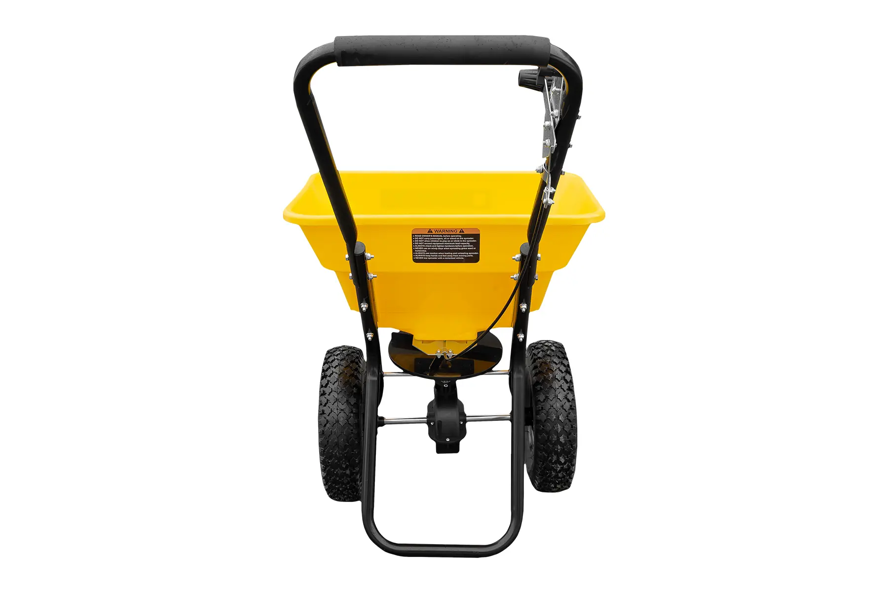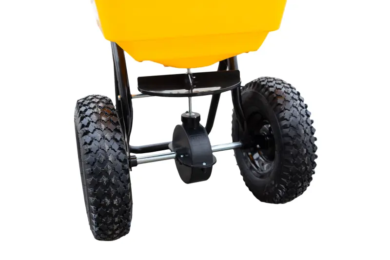 Plynulá regulácia dávkovania posypu, umiestnená priamo na rukoväti, umožňuje presné nastavenie množstva materiálu podľa aktuálnej potreby, a to pohodlne počas jazdy bez nutnosti zastavovania. Vďaka tomu je posyp rovnomerný, úsporný a pod kontrolou po celej ploche, až do pracovnej šírky 2 metre. Veľké 12-palcové kolesá zabezpečujú plynulý pojazd aj na nerovnom povrchu. Pracovná výška 82 cm v kombinácii s mäkčeným madlom rukoväti zvyšuje komfort obsluhy a znižuje únavu pri dlhšej práci.