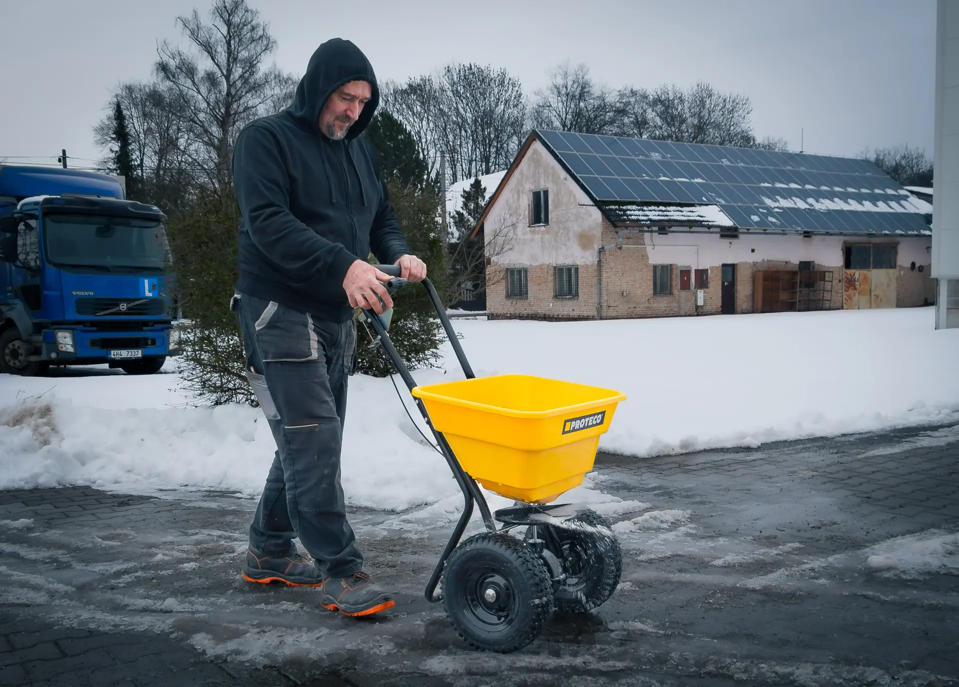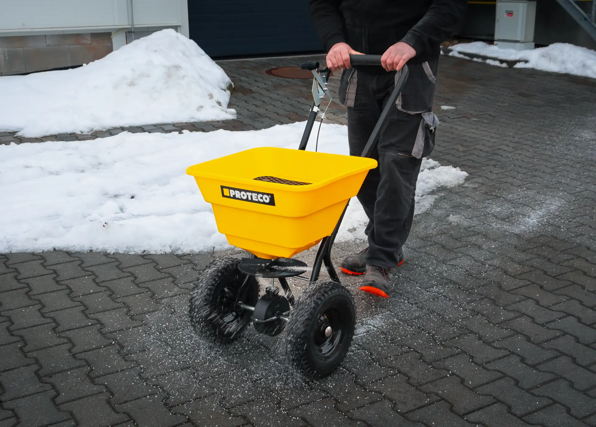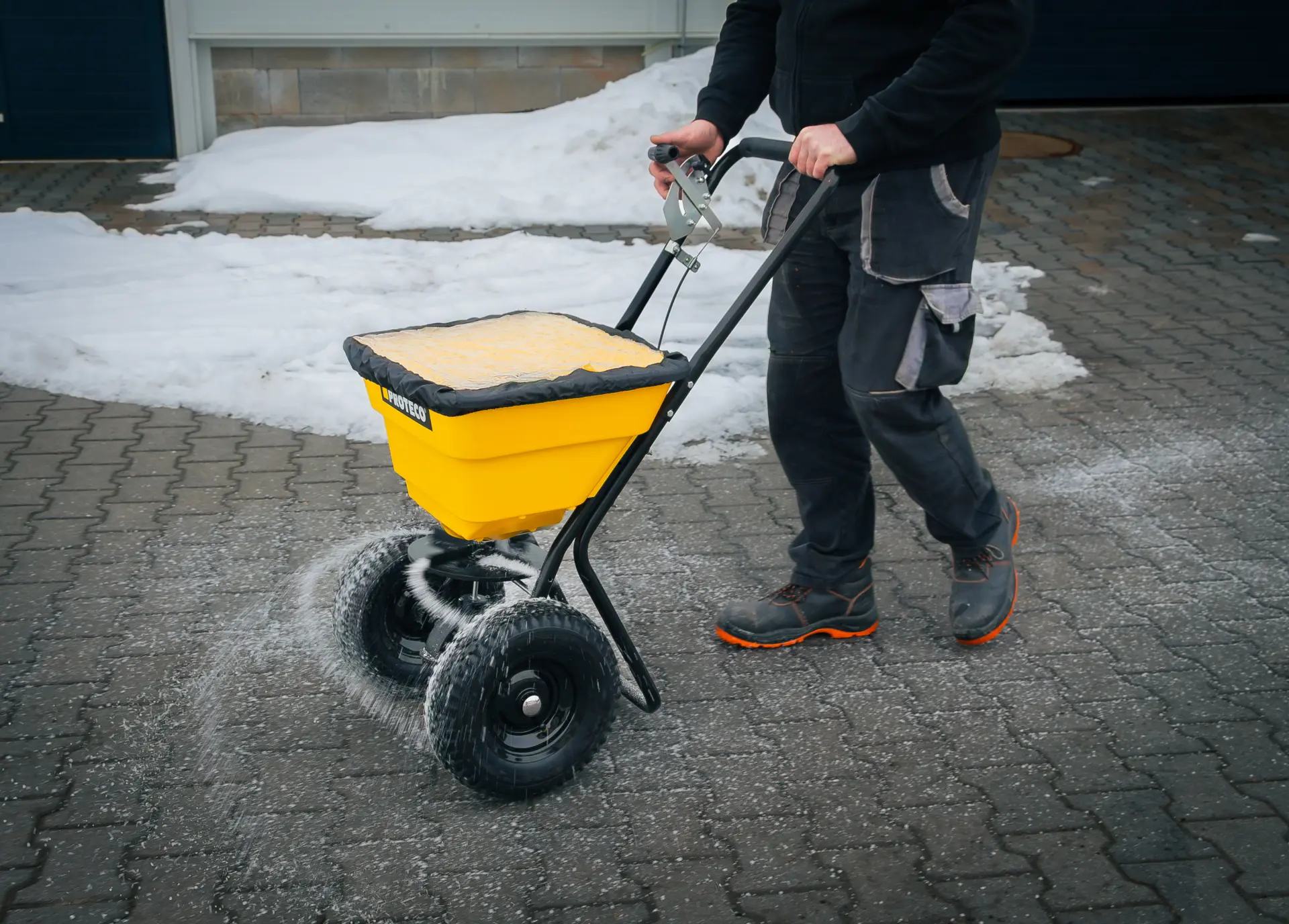 Posypový vozík PROTECO s priestrannou násypkou s objemom 36 litrov je praktickým pomocníkom na rovnomerné a úsporné rozmetanie posypových materiálov, ktorý využijete počas celého roka. V zimných mesiacoch je ideálny na aplikáciu soli, piesku alebo popola pri boji proti namŕzajúcim chodníkom, dlažbám a asfaltovým cestám. Počas jarnej a letnej sezóny ho využijete na aplikáciu granulovaných hnojív na trávniky, záhony a okrasné plochy, výsev trávnych zmesí alebo rozmetanie ďalších suchých sypkých materiálov.
